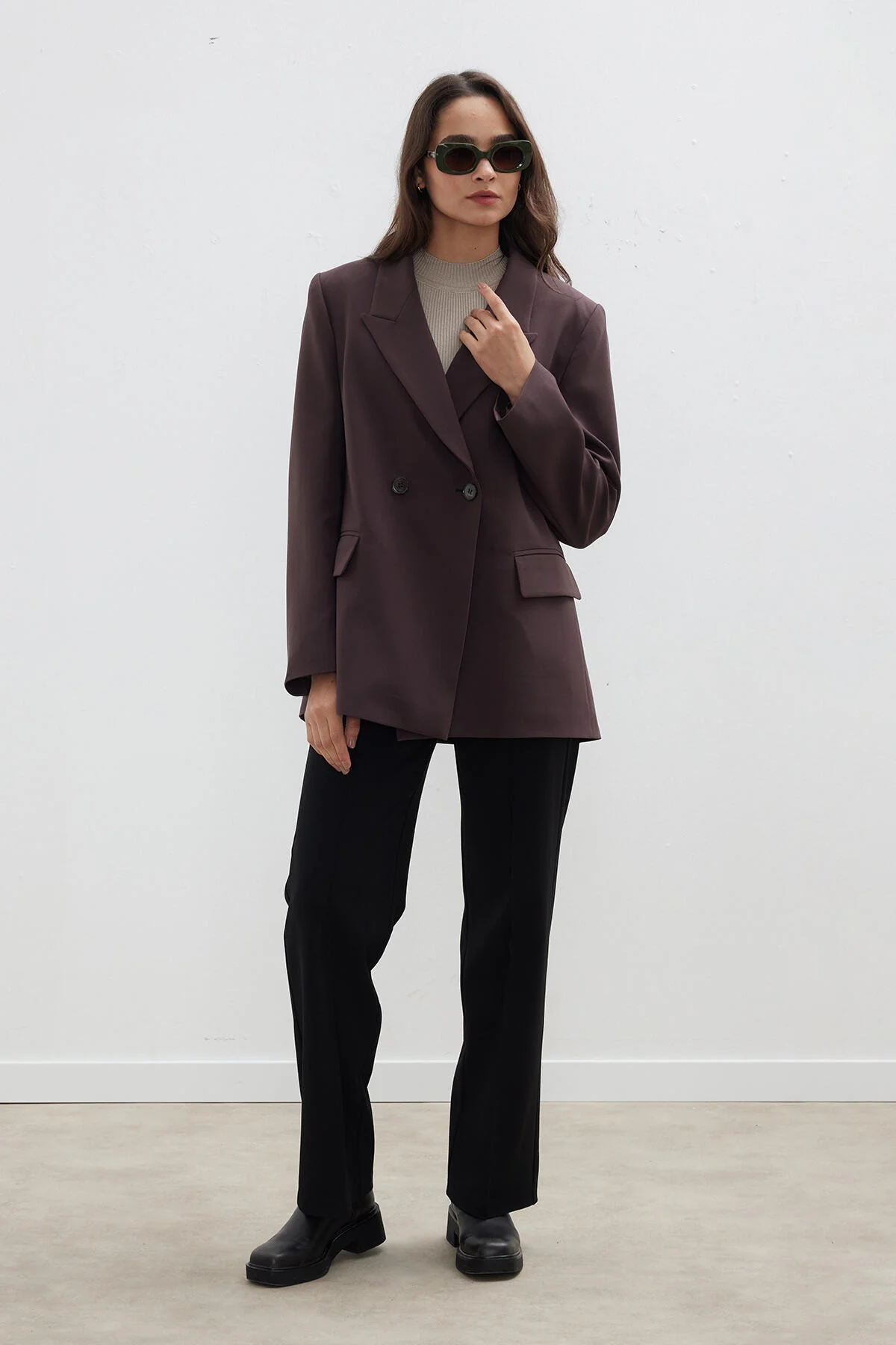 Double-Breasted Classic Blazer Jacket Dark Brown