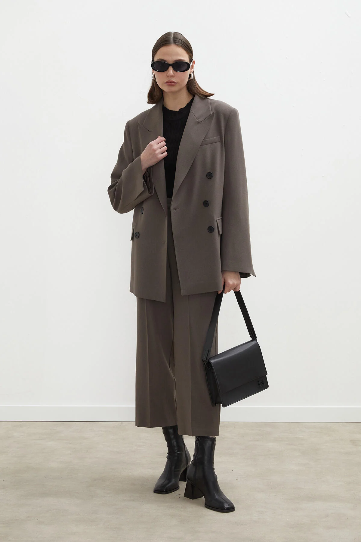 Oversized Double-Breasted Blazer Jacket Mink