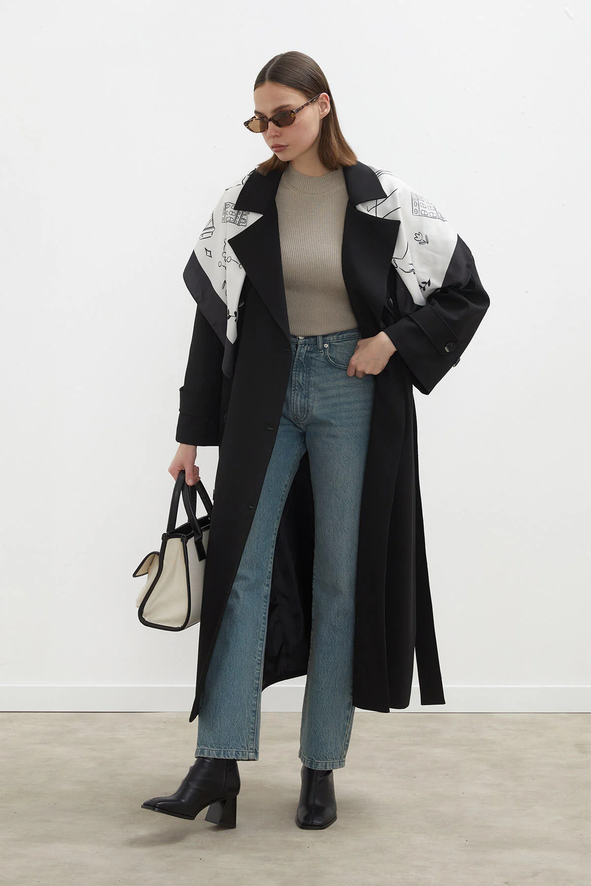 Features a double-breasted closure, highlighted by classic storm flap and epaulet details, embodying the essence of traditional trench aesthetics. Lined for added warmth and comfort, its oversized silhouette and maxi length offer a modern twist, ensuring you stand out with an elegant, flowing profile. Practical side pockets and a belt allow you to adjust the fit and silhouette to your liking, making it a versatile addition to any wardrobe.